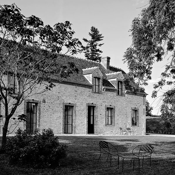 Dans un écrin de campagne, ce bâti percheron a été rénové dans un esprit atypique, presque étonnant, comme un lieu inédit plongé dans un environnement naturel : Une évasion parmi des oeuvres artistiques, tels que "le grand diptyque" à la pastel de Julien Colombier, dans un salon pensé comme une serre, avec une décoration inhabituelle mélangeant les années 50, 60, 70 et 80. Une immense cheminée ouverte, en béton banché, comme une colonne, offre un espace pour s'asseoir et se ressourcer devant un feu hivernal. L'ensemble des pièces qui composent Maison Ceronne surprennent par leur caractère insolite voire singulier. Se réveiller dans l'une des chambres de la maison, avec les oiseaux qui chantent, le bruit du vent dans les arbres séculiers, telle est la promesse de ce voyage inhabituel dans la nature.