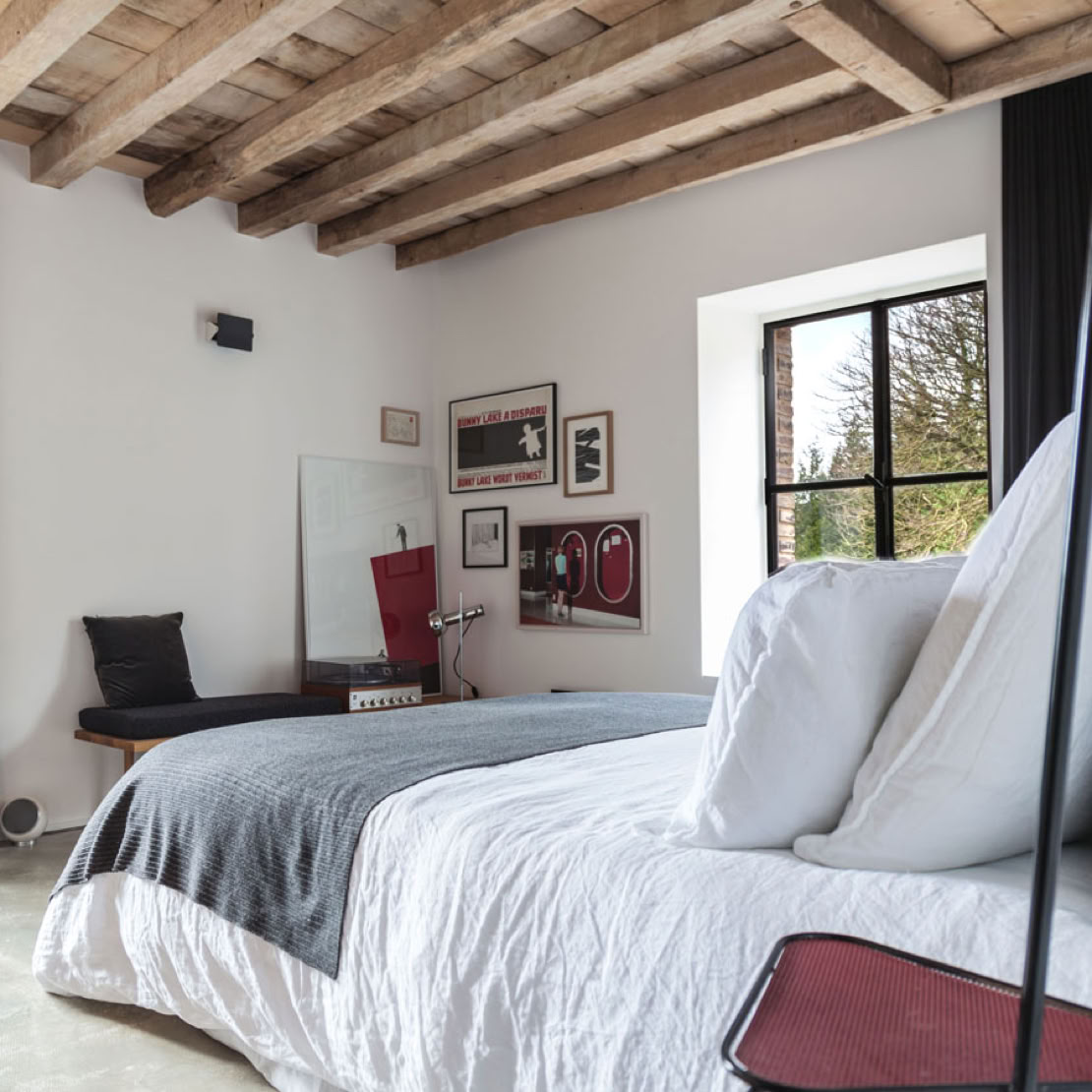 Les chambres supérieures (20 à 24m2) proposées à Maison Ceronne, dans un style épuré, sont équipées d'un mélange de mobilier contemporain et vintage, et ont toutes leur particularité.